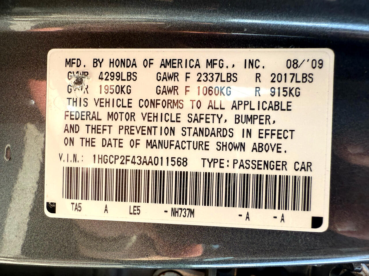 Vehicle Inquiry for 2010 Honda Accord Sdn 4dr I4 Auto LX-P